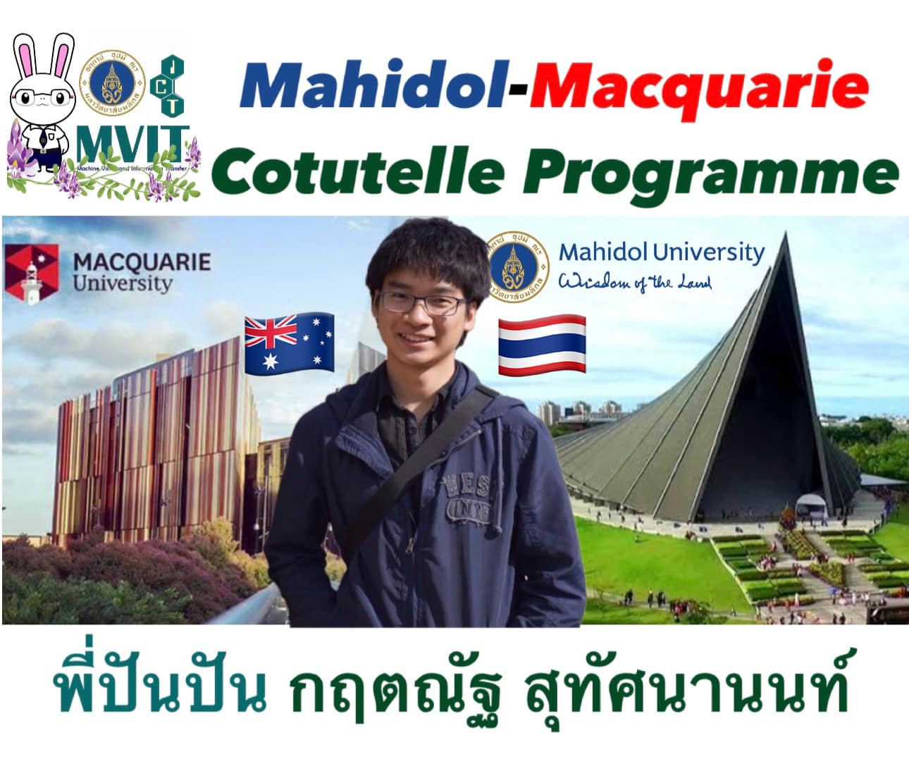 มาทำความรู้จัก และบทสัมภาษณ์ พี่ปันปัน กฤตณัฐ สุทัศนานนท์ นศ. ป.เอก ICT Mahidol University และเป็นพี่ MUAlumni รุ่น123 ได้ทุน เข้าร่วมโครงการแลกเปลี่ยนการวิจัย Mahidol🇹🇭-Macquarie🇦🇺 Cotutelle Programme (MUIR) โครงการนี้พี่ปันปัน ไปแลกเปลี่ยนด้านงานวิจัย ในสาขาคอมพิวเตอร์ Ai ณ. Macquarie University ประเทศออสเตรเลีย เป็นเวลา 1ปี6เดือน และ ได้รับทุนสนับสนุน iMQRES จาก Macquarie University ที่ไม่มีภาระผูกพัน