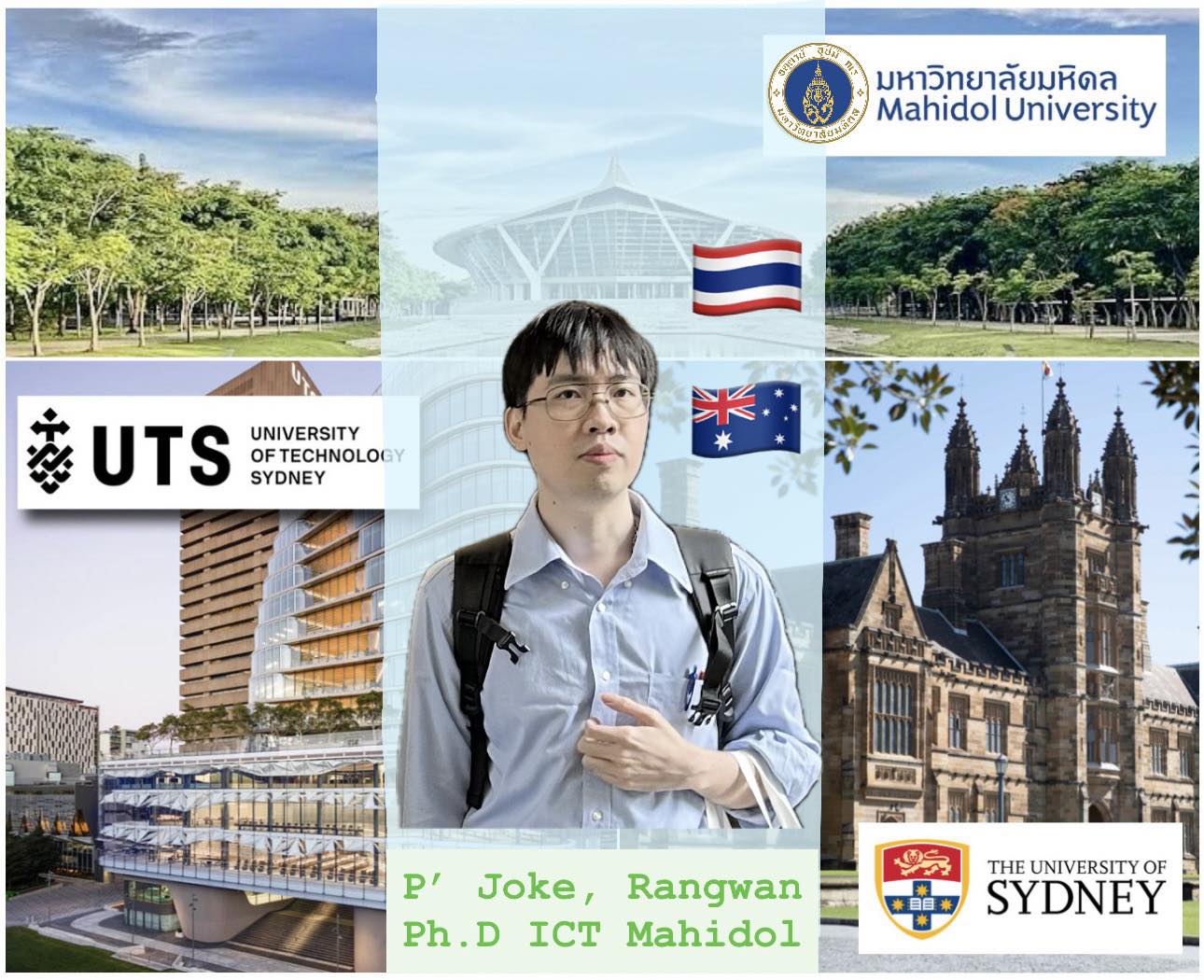 การทำวิจัยด้าน IT ที่ USYD และ UTS ที่ประเทศ Australia 🇦🇺 จากทุน โครงการปริญญาเอกกาญจนาภิเษก RGJ Ph.D (คปก.) และการสนับสนุนจากมหาวิทยาลัยมหิดลและคู่ความร่วมมือ กับพี่โจ๊ก นายรางวัล กสานติกุล (Mr. Rangwan Kasantikul) ศิษย์เก่าคณะICT ทั้ง ปริญญาตรี โท และการศึกษาปริญญาเอก